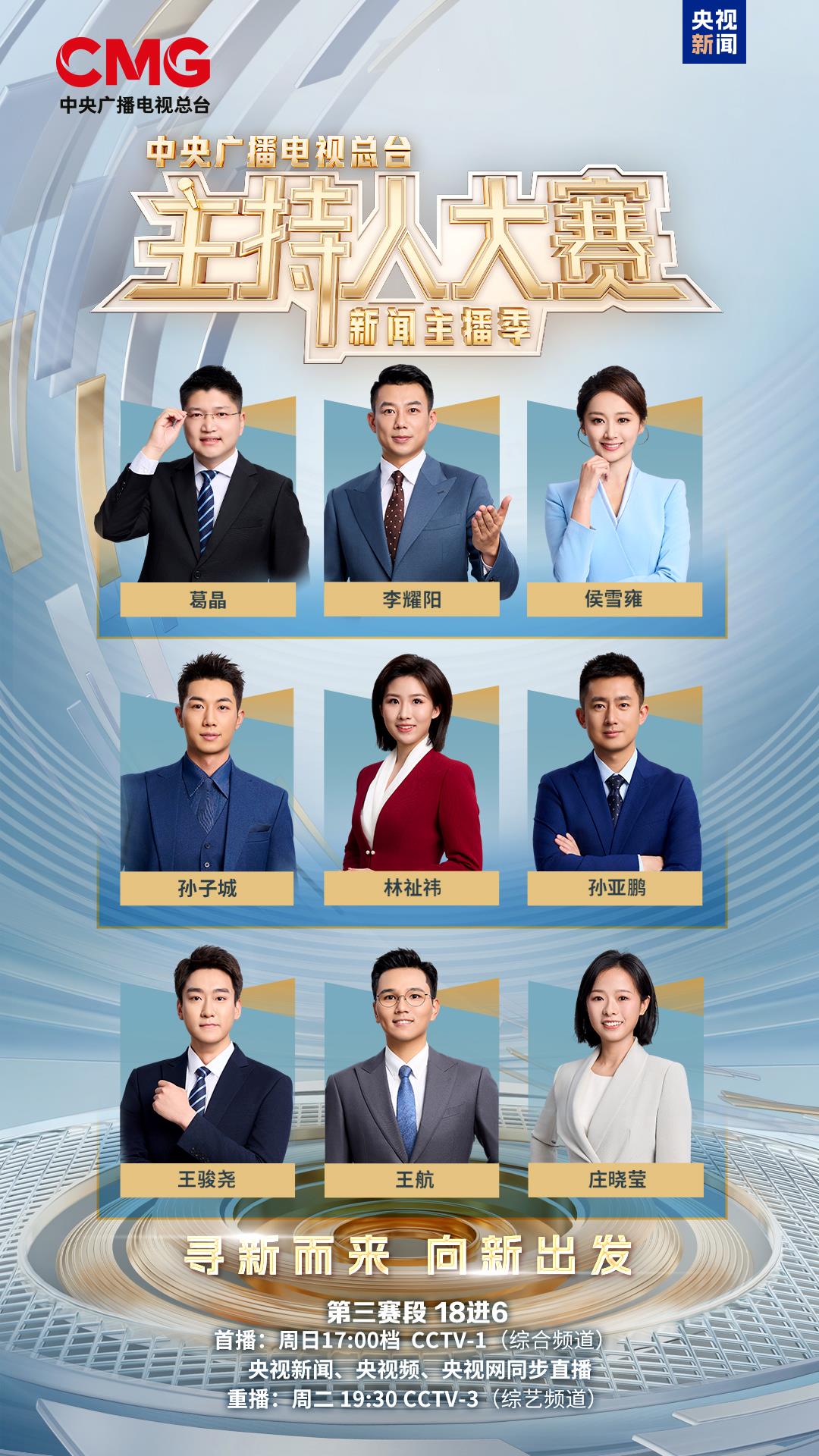 《中央广播电视总台主持人大赛(新闻主播季)》第三赛段收官之战将于11月2日(周日)在央视综合频道(CCTV-1)17:00档以及央视新闻、央视频、央视网等平台播出。